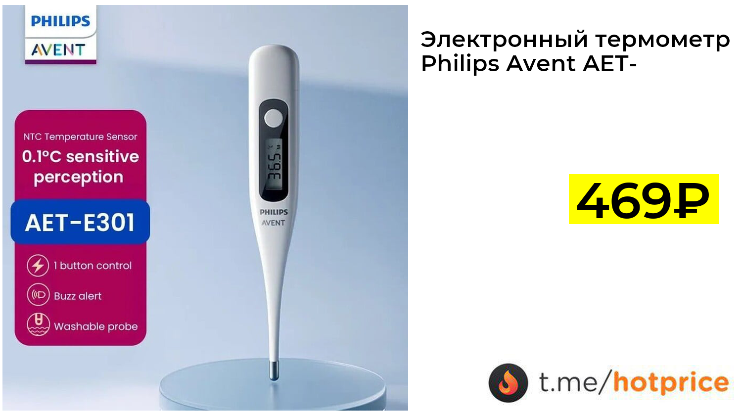 🔹 Электронный термометр Philips Avent AET-E301 (из-за рубежа, с Озон-картой) за 469₽ ❗️
