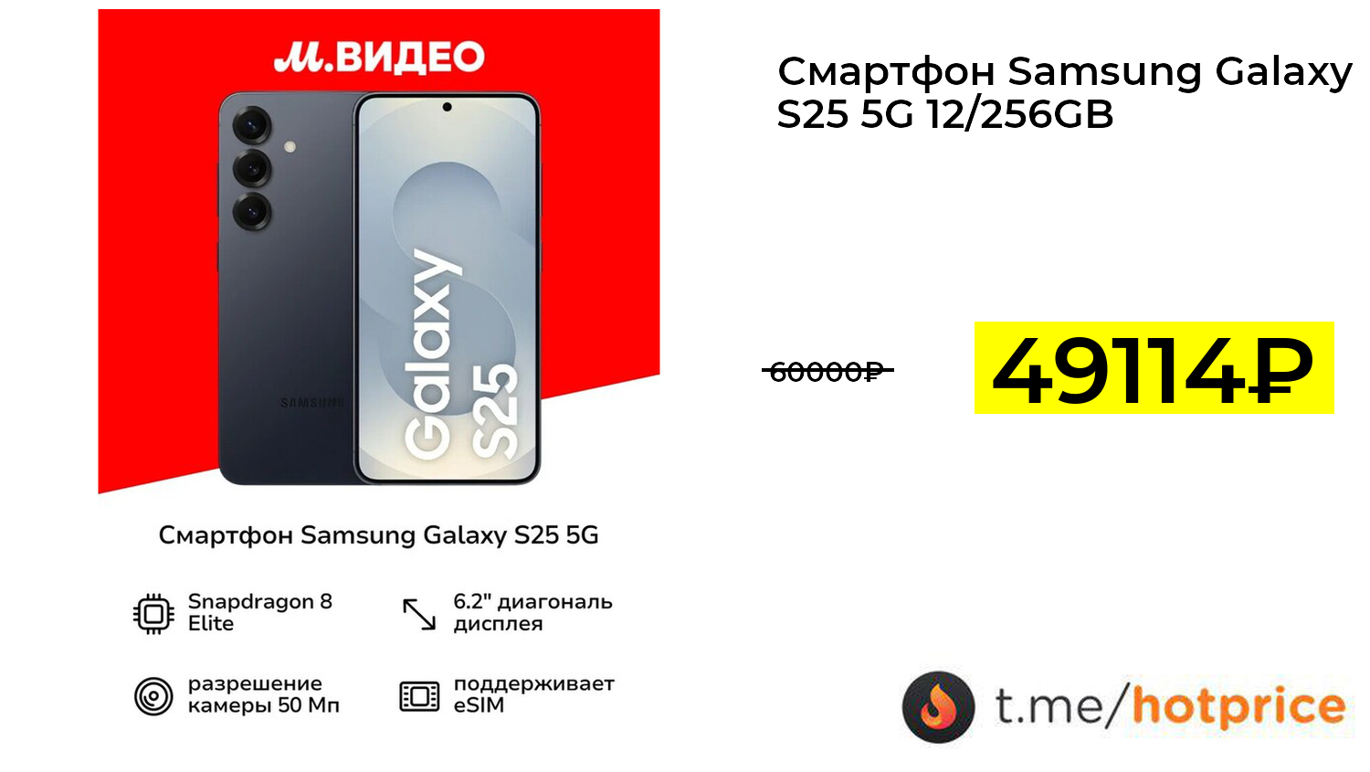 🔹 Смартфон Samsung Galaxy S25 5G 12/256GB Черный (с картой Пэй) за 49114₽ ❗️ (везде: 60000+₽)