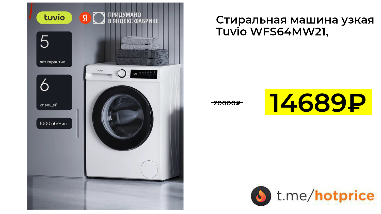 🔹 Стиральная машина узкая Tuvio WFS64MW21, 6 кг за 14689₽ ❗️ (везде: 20000+₽)
