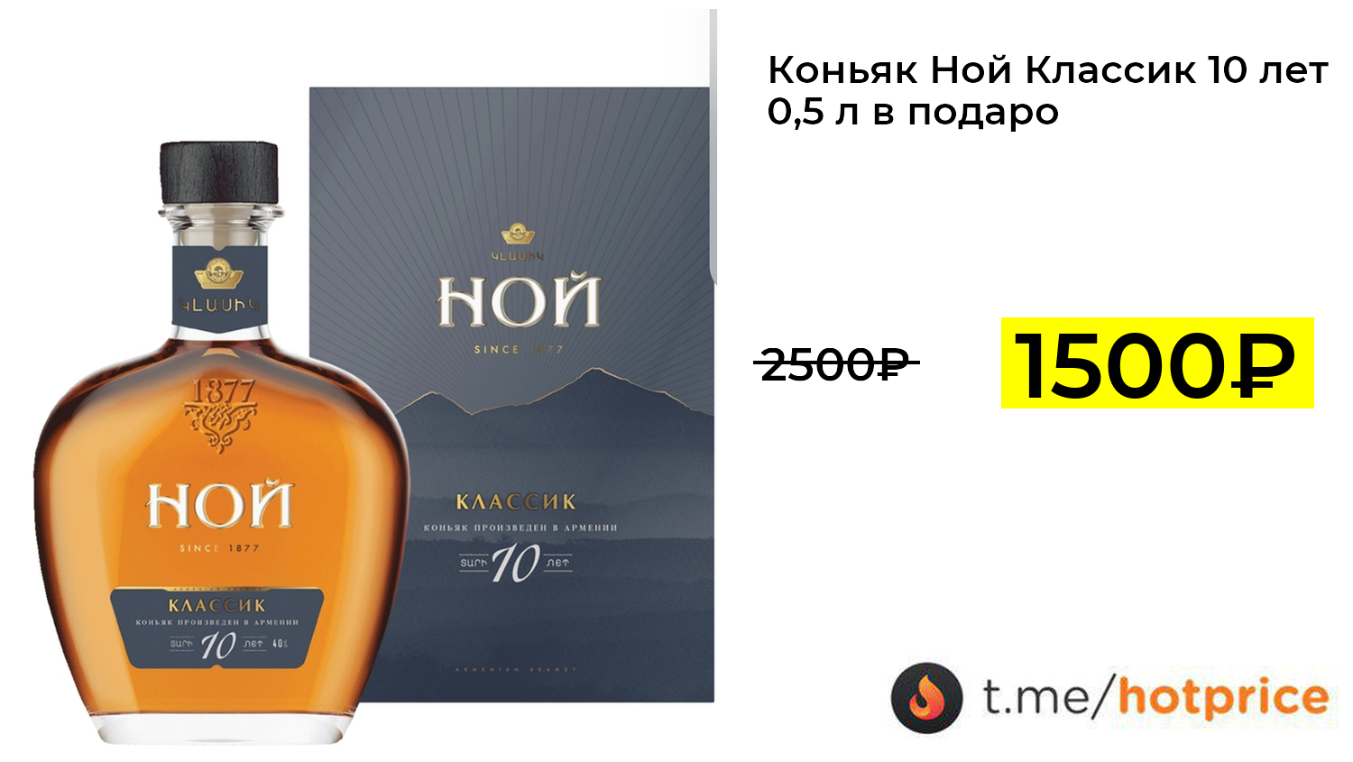 🔹 Коньяк Ной Классик 10 лет 0,5 л в подарочной упаковке за 1500₽ ❗️ (везде: 2500+₽)