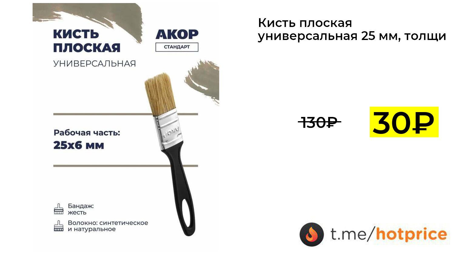 🔹 Кисть плоская универсальная 25 мм, толщина 6 мм (с ozon картой и баллами продавца) за 30₽ ❗️ (везде: 130+₽)