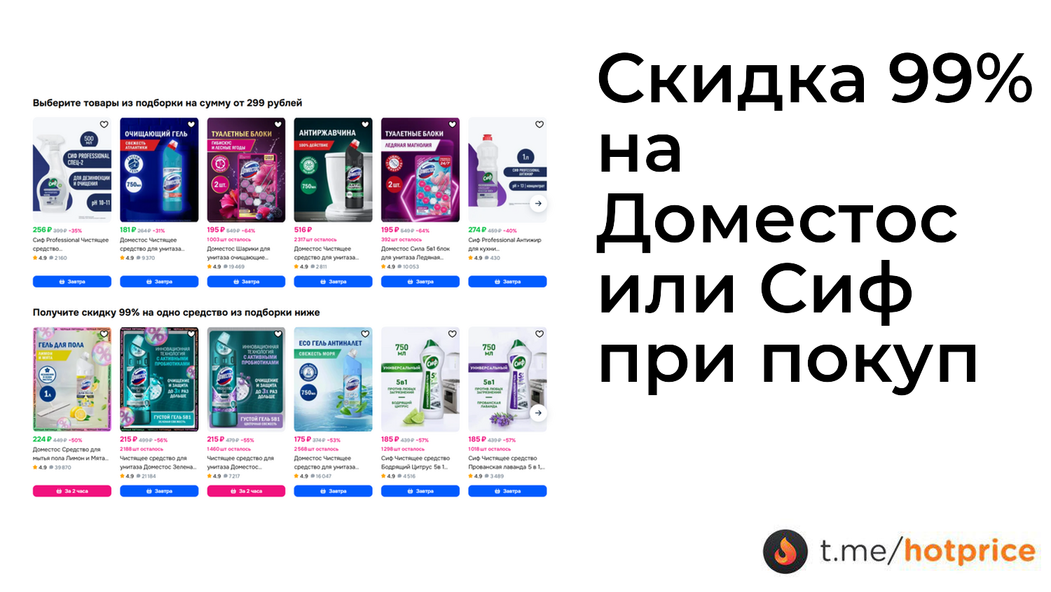 🔹 Скидка 99% на Доместос или Сиф при покупке товара из подборки от 299₽ ❗️