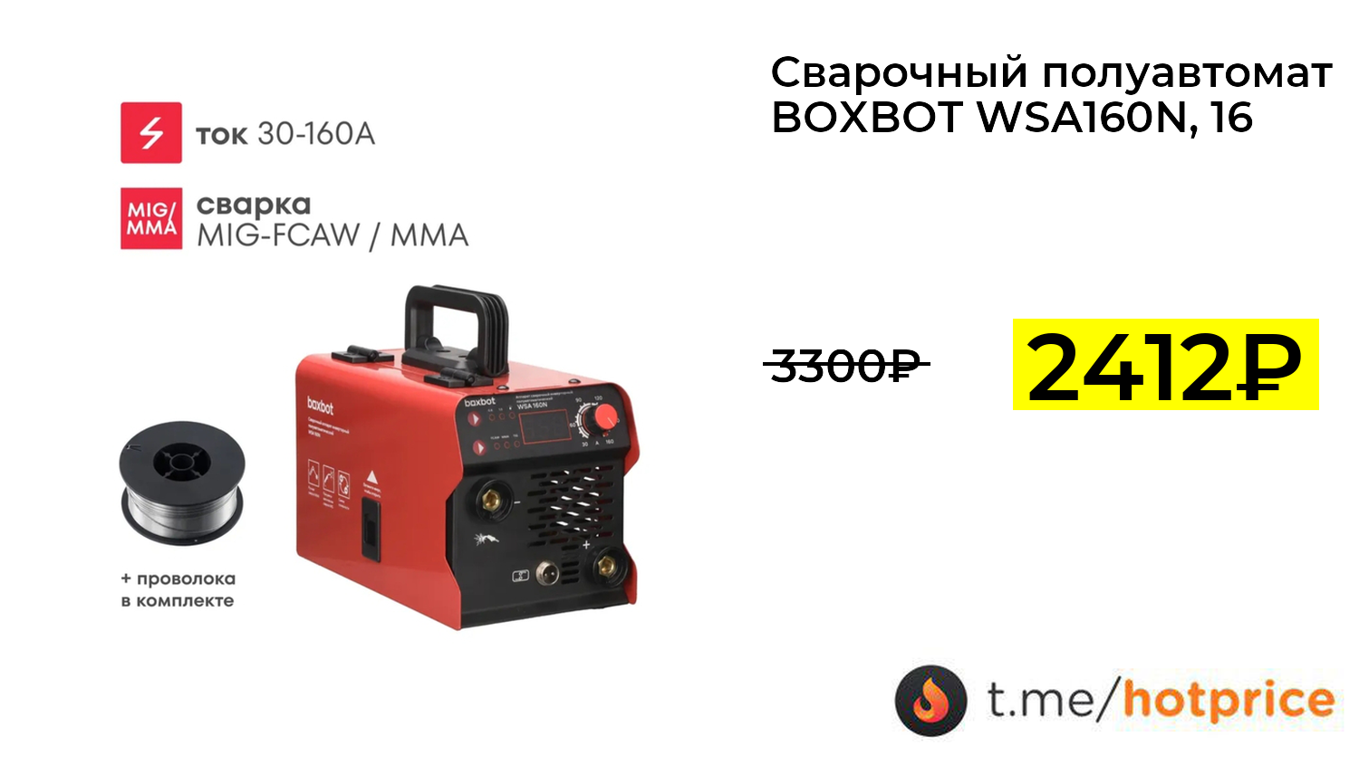 🔹 Сварочный полуавтомат BOXBOT WSA160N, 160А, MIG, MMA, 0.8-1 мм за 2412₽ ❗️ (везде: 3300+₽)