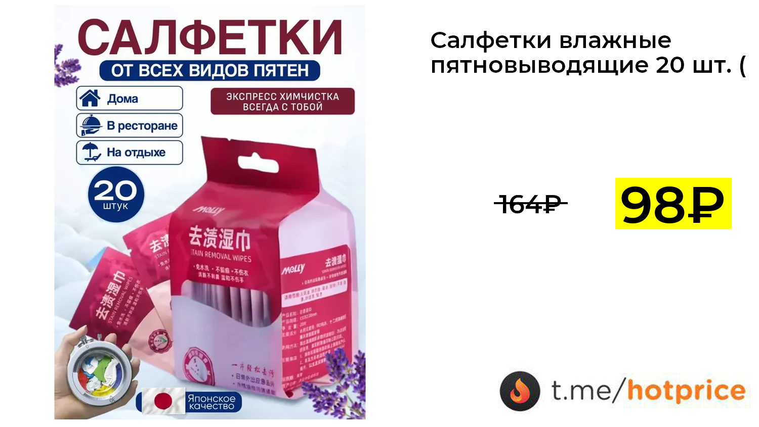 🔹 Салфетки влажные пятновыводящие 20 шт. (с картой OZON, из-за рубежа) за 98₽ ❗️ (везде: 164+₽)
