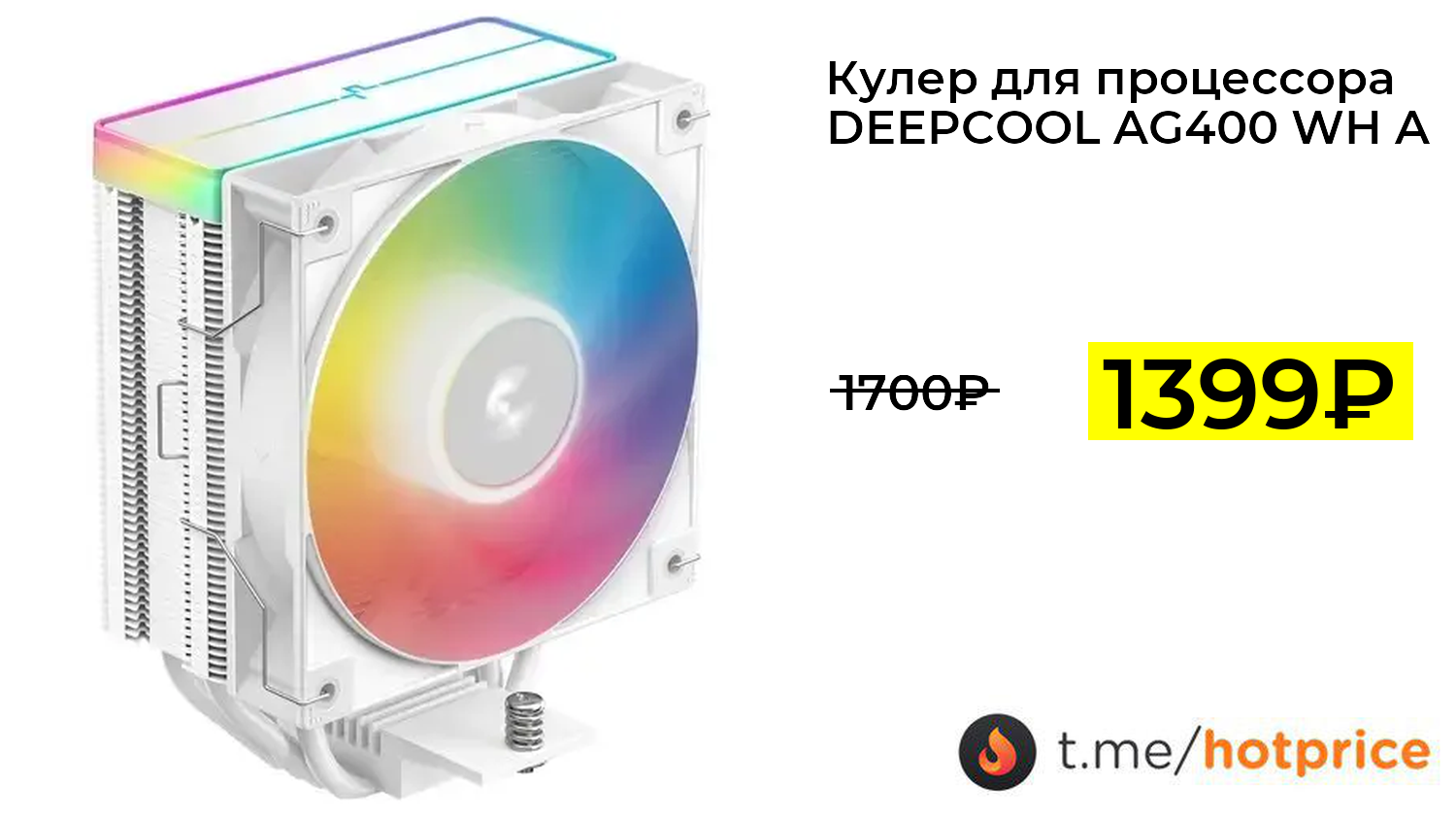 🔹 Кулер для процессора DEEPCOOL AG400 WH ARGB V2 за 1399₽ ❗️ (везде: 1700+₽)