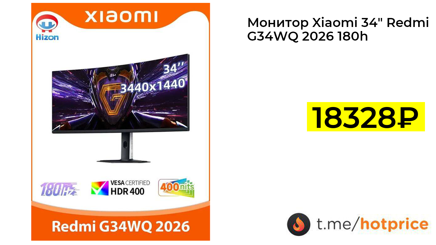 🔹 Монитор Xiaomi 34" Redmi G34WQ 2026 180hz (C34WQDA-RG, из-за рубежа, с картой OZON) за 18328₽ ❗️