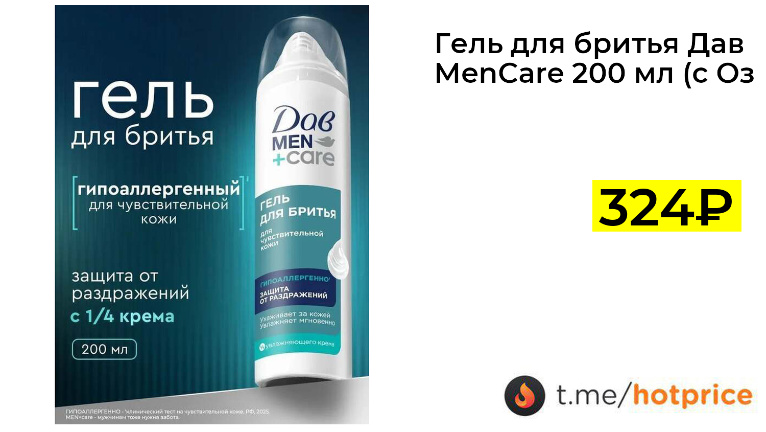 🔹 Гель для бритья Дав MenCare 200 мл (с Озон-картой, возврат 169 баллов) + 180 баллов за отзыв за 324₽ ❗️