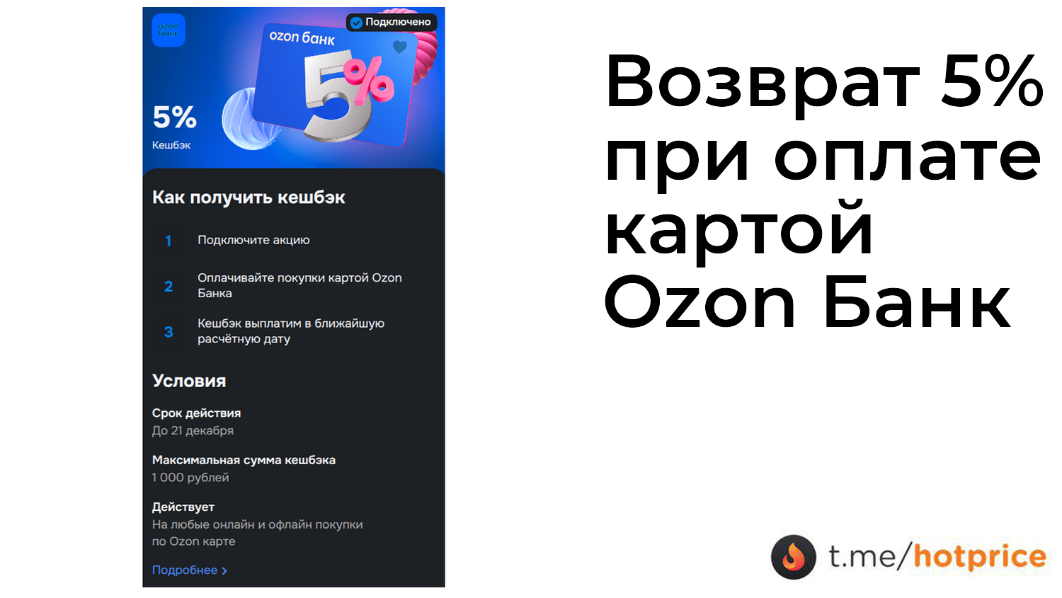 🔹 Возврат 5% при оплате картой Ozon Банк ❗️
