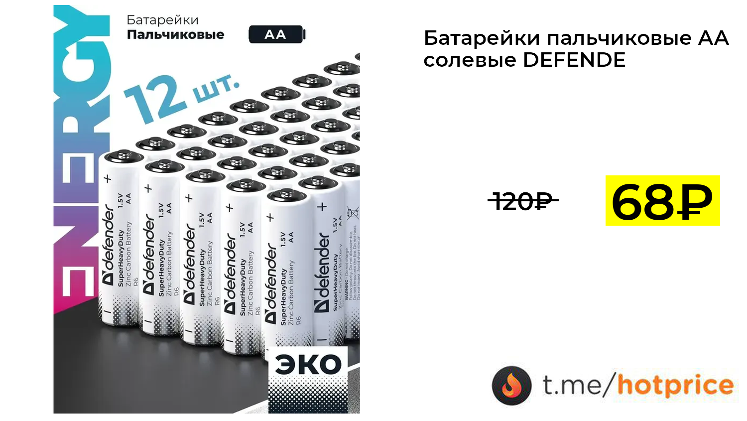 🔹 Батарейки пальчиковые АА солевые DEFENDER 12 штук за 68₽ ❗️ (везде: 120+₽)