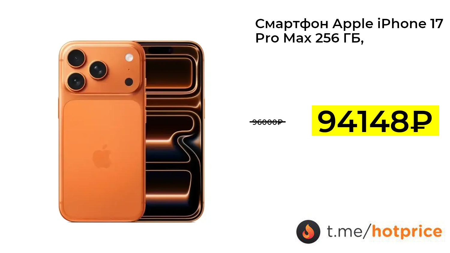 🔹 Смартфон Apple iPhone 17 Pro Max 256 ГБ, оранжевый e-SIM за 94148₽ ❗️ (везде: 96000+₽)