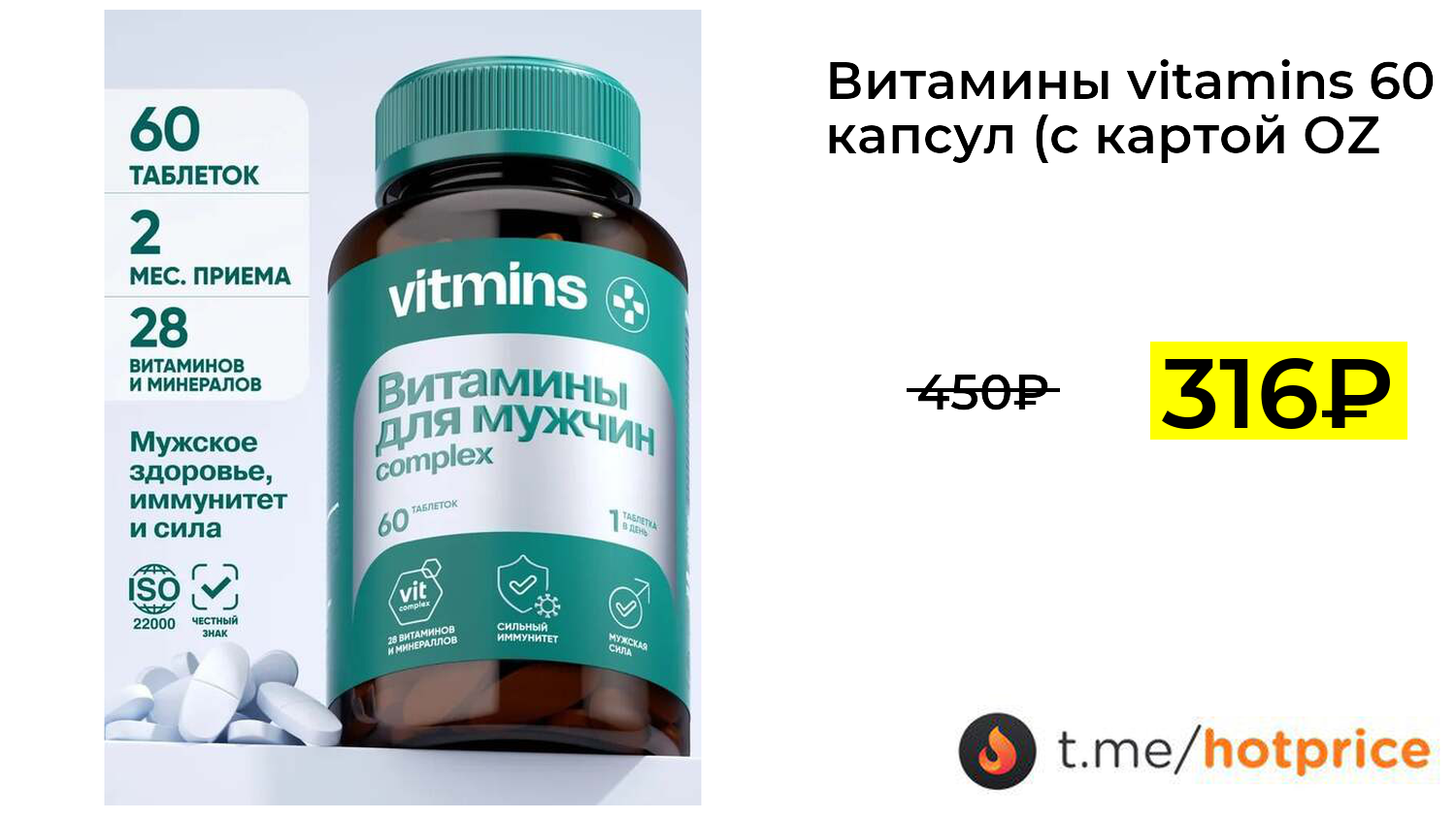 🔹 Витамины vitamins 60 капсул (с картой OZON) за 316₽ ❗️ (везде: 450+₽)