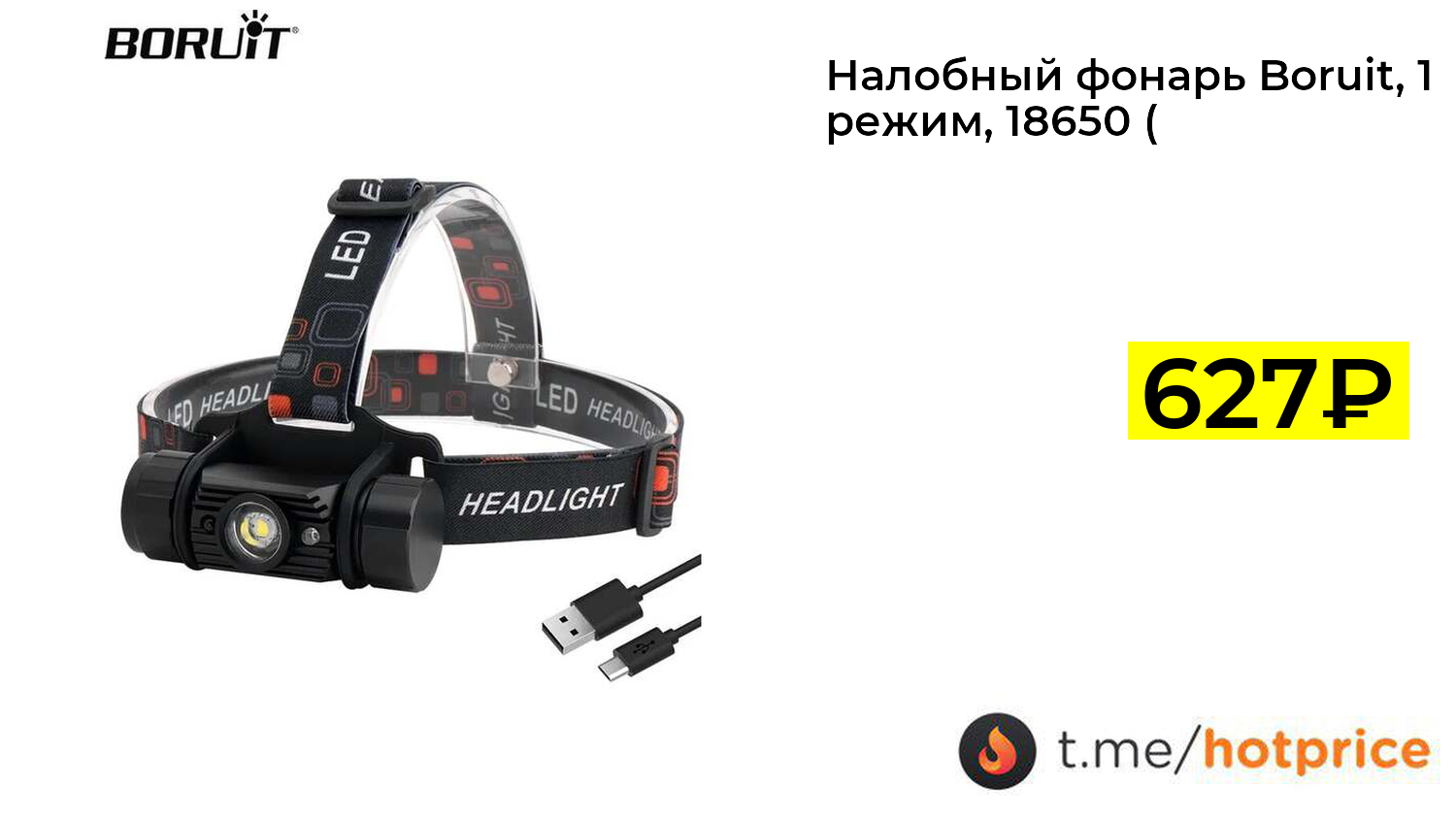 🔹 Налобный фонарь Boruit, 1 режим, 18650 (с картой OZON, из-за рубежа) за 627₽ ❗️