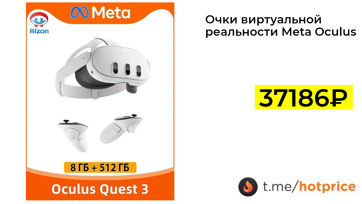 🔹 Очки виртуальной реальности Meta Oculus Quest 3 8 ГБ + 512 ГБ, Snapdragon XR2 Gen 2, Белый (+ пошлина ~3500, с картой OZON) за 37186₽ ❗️