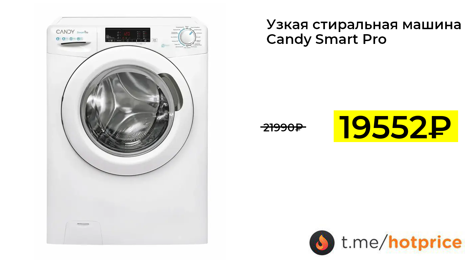 🔹 Узкая стиральная машина Candy Smart Pro CSO34106T1/2-07, 6 кг, глубина 34см, обработка паром (с Я.Пэй/Альфой, зависит от аккаунта) за 19552₽ ❗️ (везде: 21990+₽)
