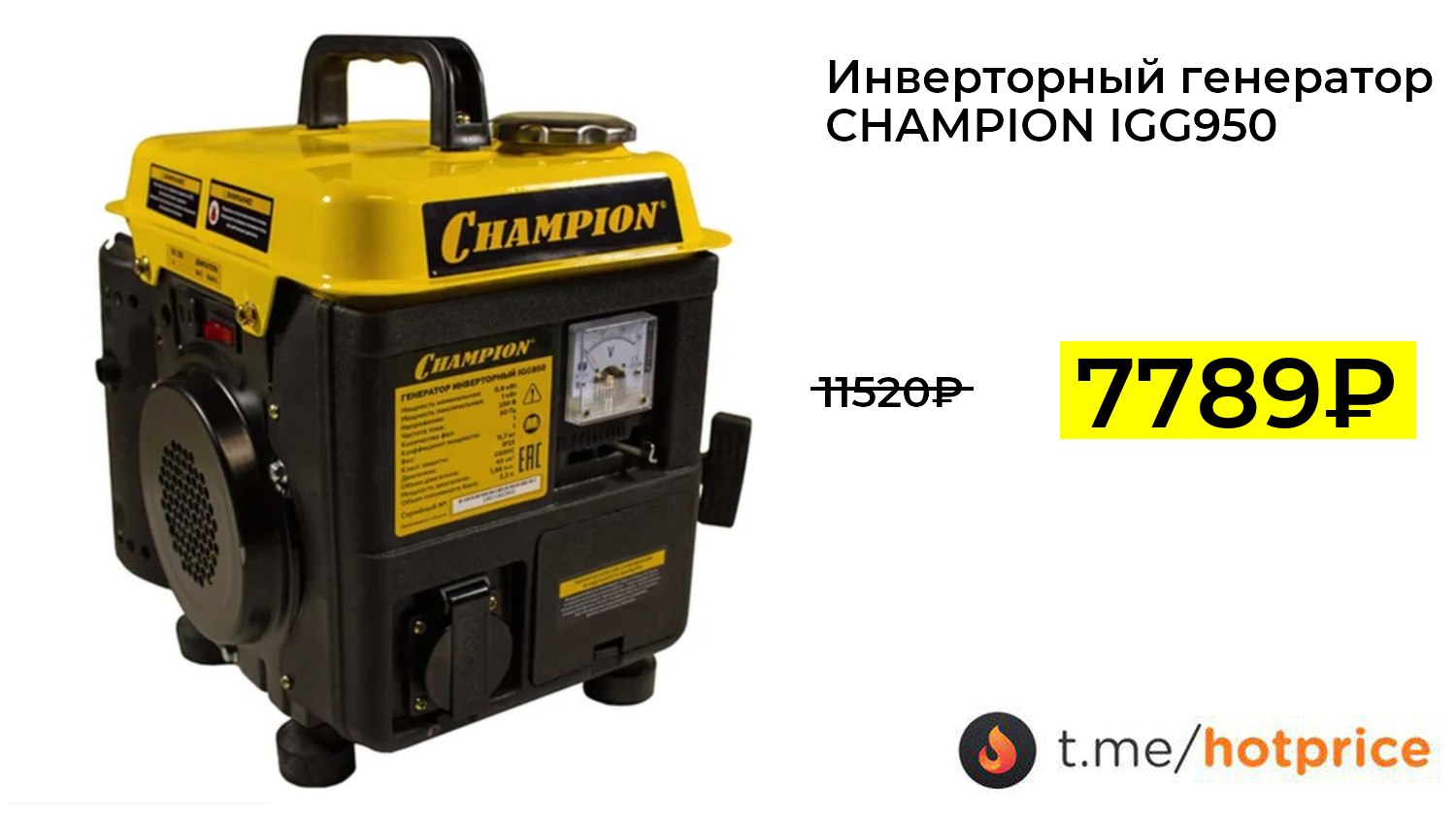 🔹 Инверторный генератор CHAMPION IGG950 за 7789₽ ❗️ (везде: 11520+₽)