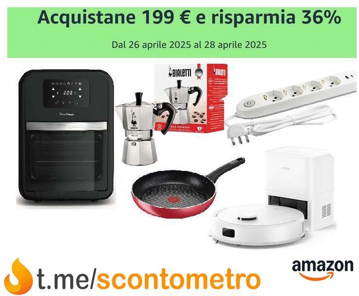 ✨Super promo da Amazon! Acquistane almeno 199€ di una super selezione di elettrodomestici ed accessori e risparmia 36% al carrello! Possiamo trovare microonde, friggitrici ad aria, tantissimi piccoli elettrodomestici, robot da cucina, accessori per la casa e tanto altro.