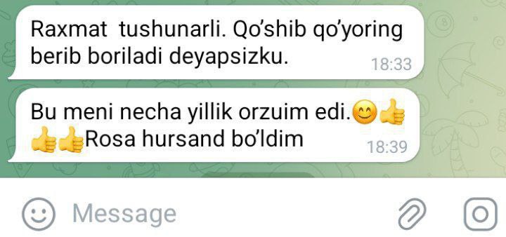 Qadalgan habarlarga qadab qo'ydim, kerak bo‘lganda qadalgan habarlar orqali topishingiz mumkin.