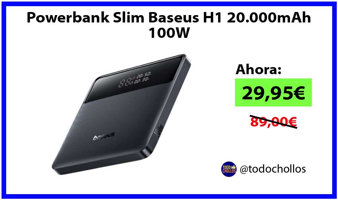 🔹Powerbank Slim Baseus H1 20.000mAh 100W solo 29,95€❗️⚡️(PVP: 89,00€)