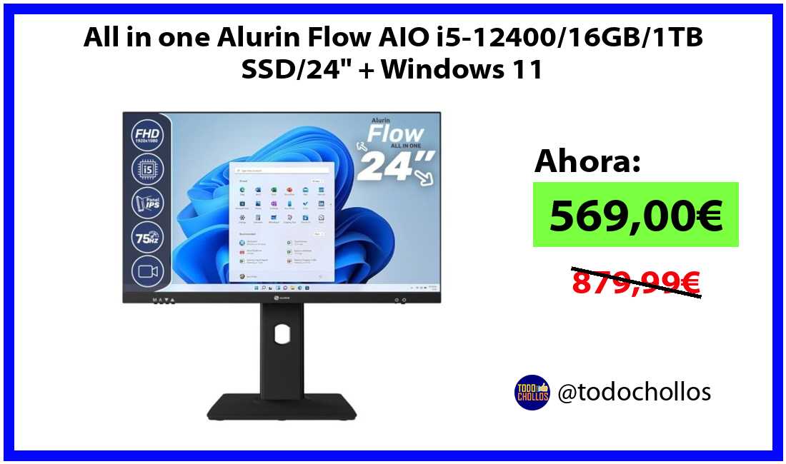 🔹All in one Alurin Flow AIO i5-12400/16GB/1TB SSD/24" + Windows 11 solo 569,00€❗️⚡️(PVP: 879,99€)