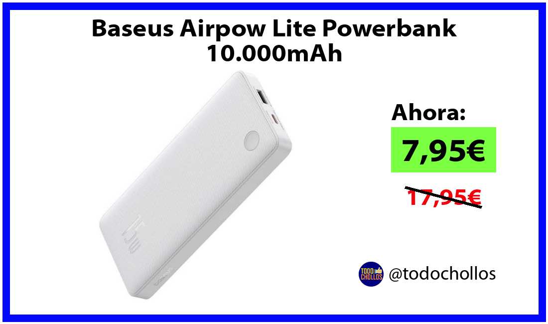 🔹Baseus Airpow Lite Powerbank 10.000mAh solo 7,95€❗️⚡️(PVP: 17,95€)
