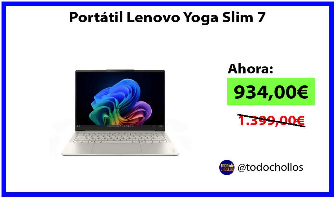 🔹Portátil Lenovo Yoga Slim 7 solo 934,00€❗️⚡️(PVP: 1.399,00€)