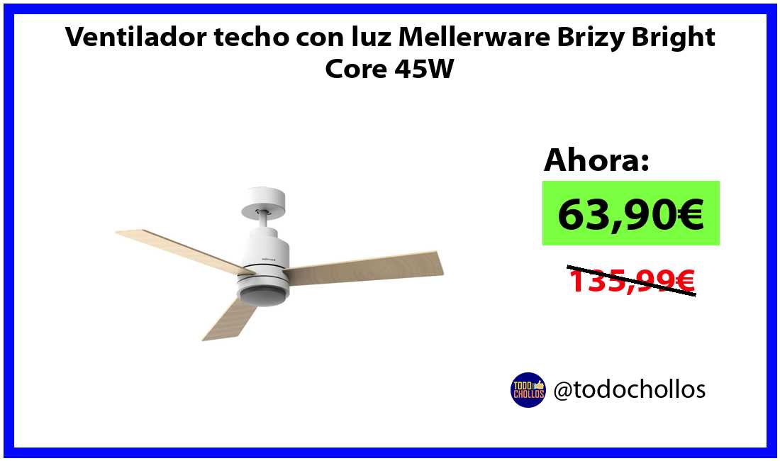 🔹Ventilador techo con luz Mellerware Brizy Bright Core 45W solo 63,90€❗️⚡️(PVP: 135,99€)