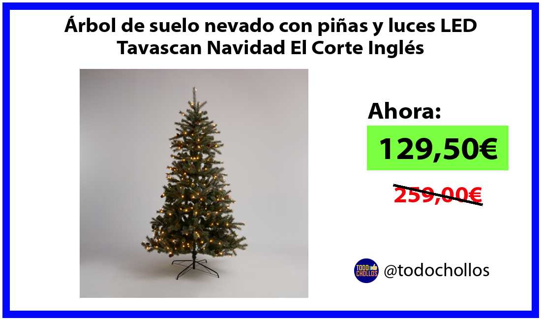 🔹Árbol de suelo nevado con piñas y luces LED Tavascan Navidad El Corte Inglés solo 129,50€❗️⚡️(PVP: 259,00€)