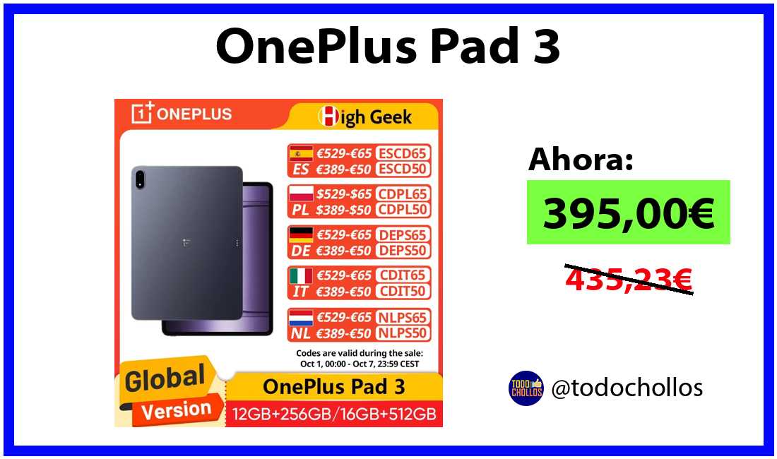 🔹OnePlus Pad 3 solo 395,00€❗️⚡️(PVP: 435,23€)
